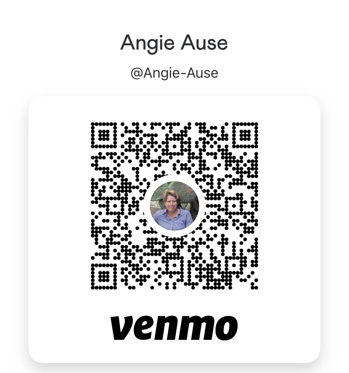 If you do not have Venmo, email Angie: angieause18@gmail.com or call: (612)804-5055